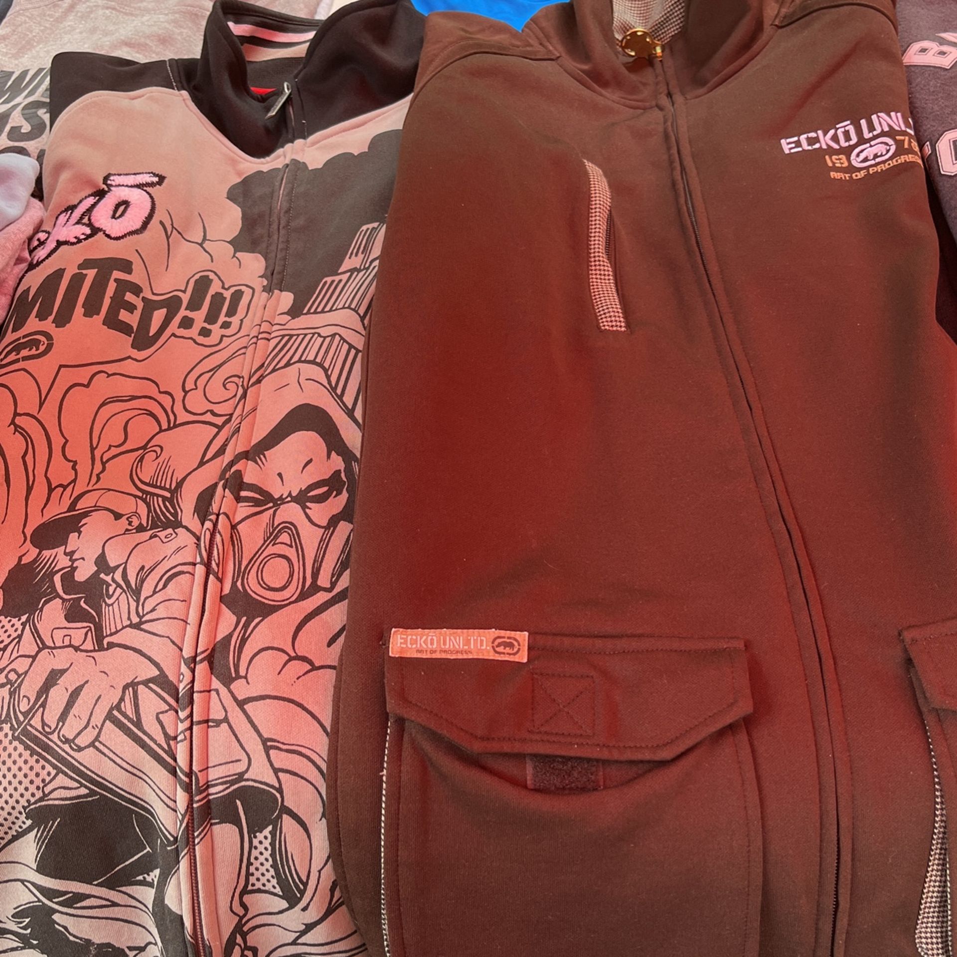 Brown jacket size medium, black/gray jacket size Large and they are $5 each