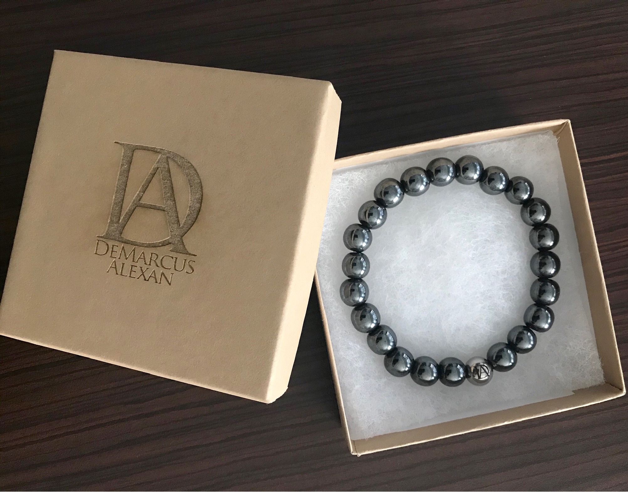 DeMarcus Alexan 8mm Black Hematite Stone Bead Bracelet