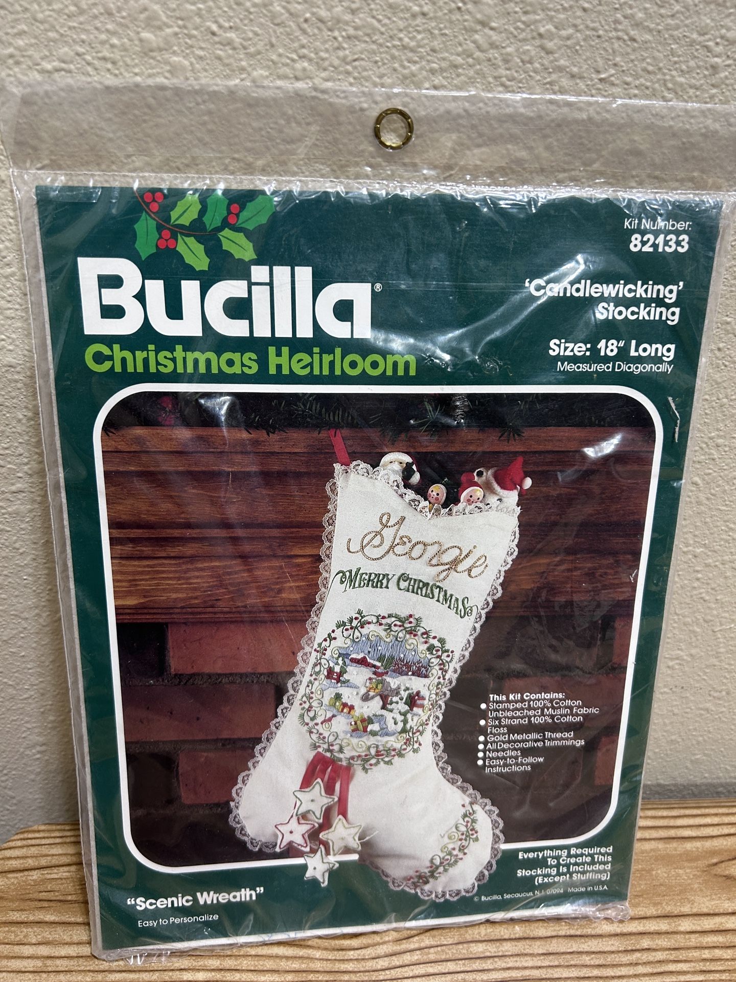 Sealed Bucilla Christmas Heirloom Candlewicking Stocking Kit Scenic Wreath 82133