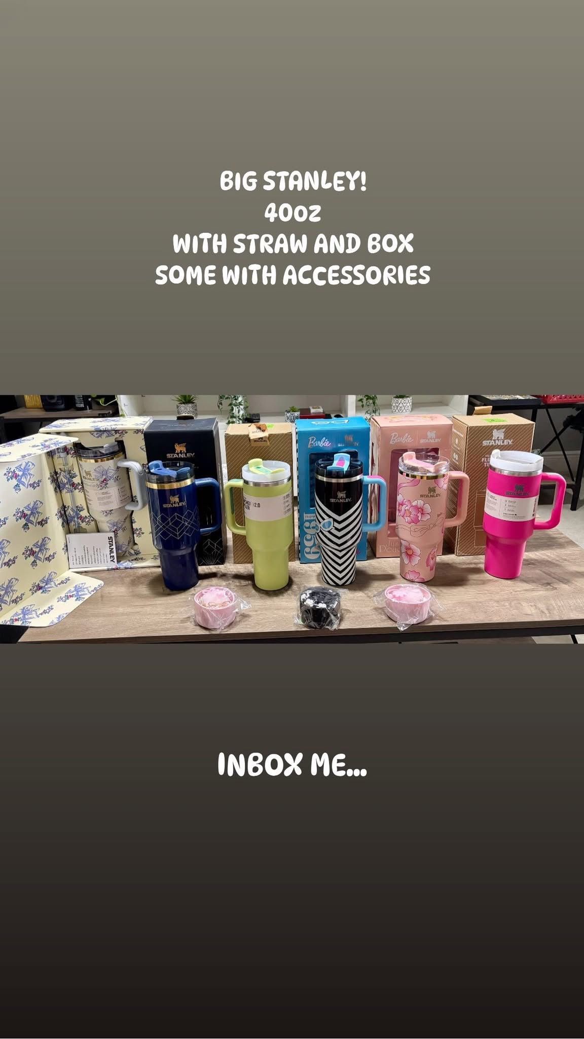 Comes with box and straw. Size 40oz. Some with accessories. All of the New