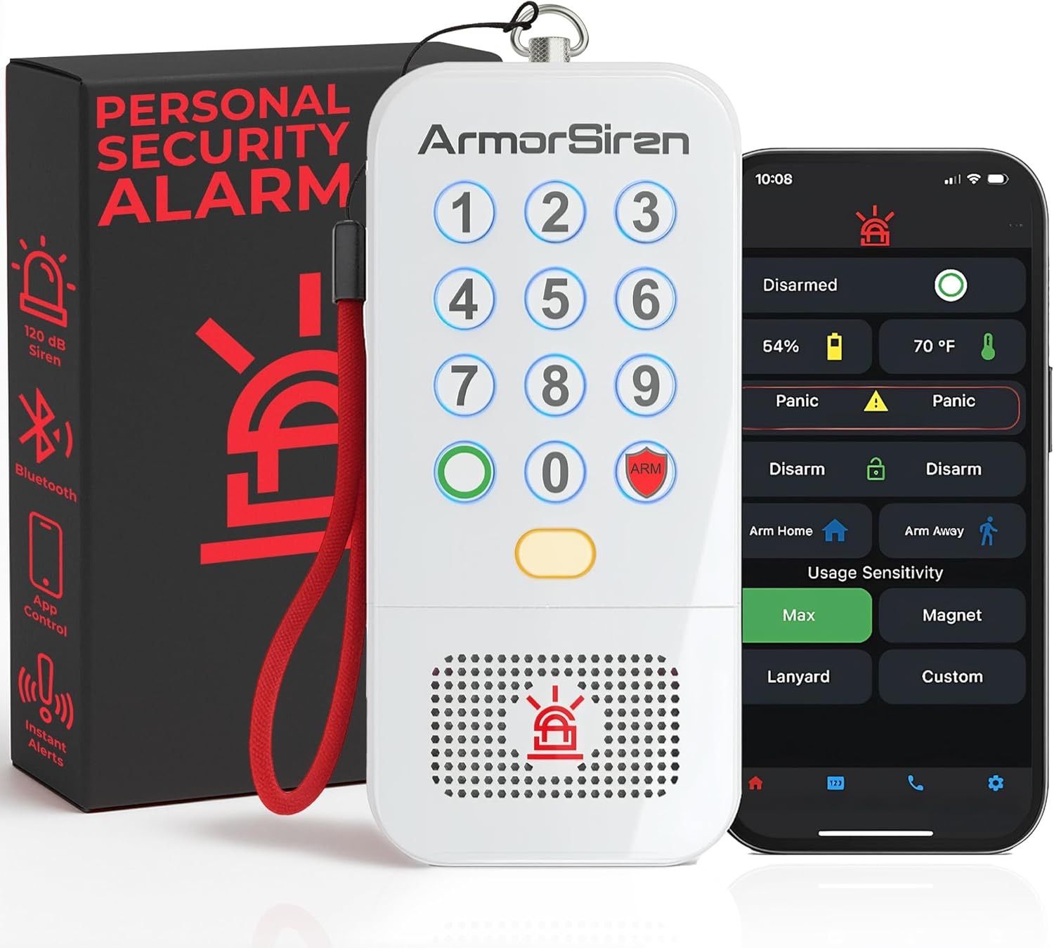 Travel-friendly security alarm featuring a 120 dB siren, motion detection sensor, and app-controlled alerts ideal for hotels, dorms, rentals, RVs, cruise ships, and gun safes with easy setup. Condition: Brand New Retail: $129
