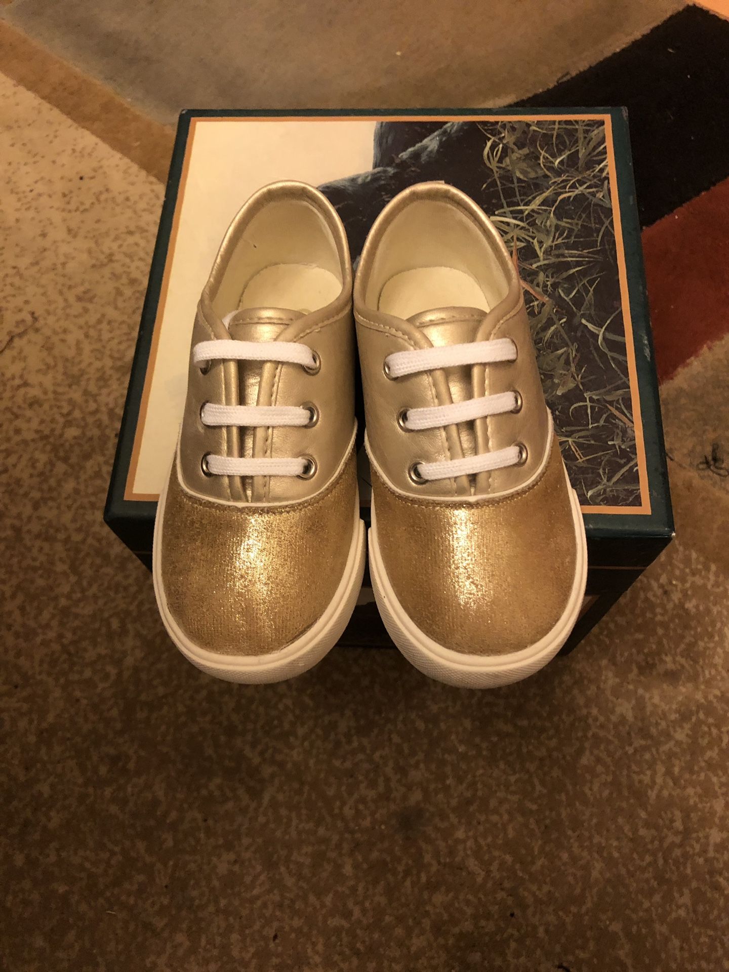 Your active little gal will shimmer and shine in the adorable shimmering gold Oskosh Girls' Casual Sneakers. Perfect for playground activities & plenty of fun. Excellent pre-owned condition.