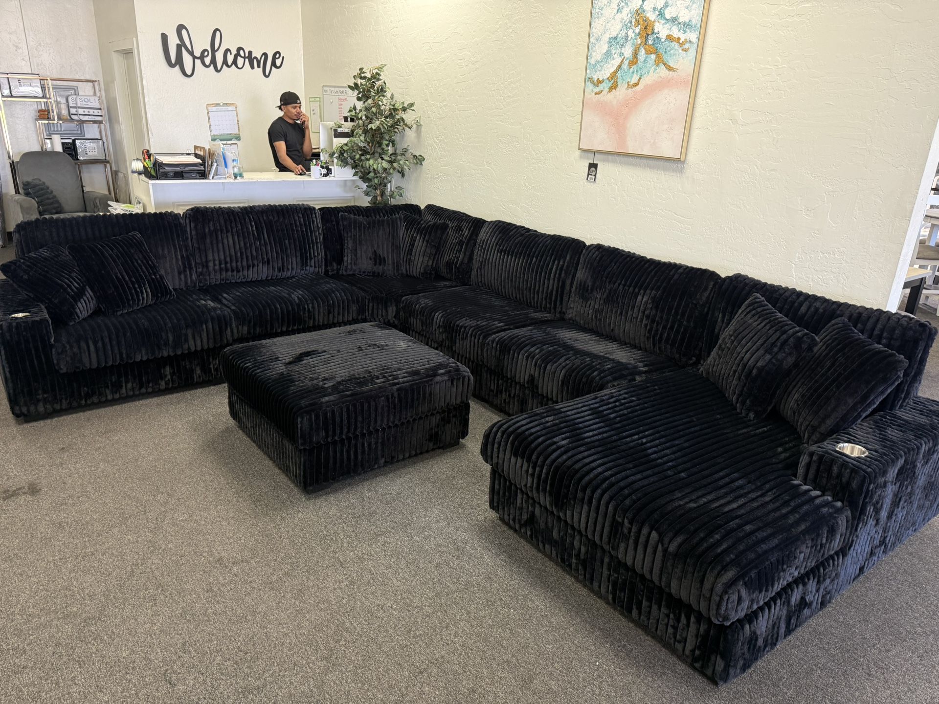 Giant Corduroy Sectional With Ottoman