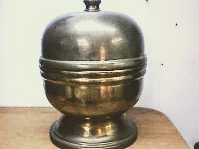 BRASS URN & LID AND FINIAL. APPROXIMATELY 9 inches tall. WIDTH: 4 3/4". Dome Top with Cap. Wide Round Footed Seat. Smooth Edge Transition from Top to Open Bottom. Finish Glossy Brass w/Patina. Vintage Piece solid brass. Circa uncertain. Signs of cosmetic wear is visible. Urn is not airtight. , price stickers on URN will remove before shipping. Urn in it current condition!. Top and Bottom 1 complete URN. No seal for airtight closure STAMPED bottom ALMAZAN SARRIED LTD # 2685. MT- 421 . S ARRIED LTD Spain country of manufacture. s Weight 3 lbs. 8 oz. Pickup Excelsior Springs Missouri PAYMENT: • PayPal or Cash only • No checks, no Cash App, no in‑app payments Door pickup