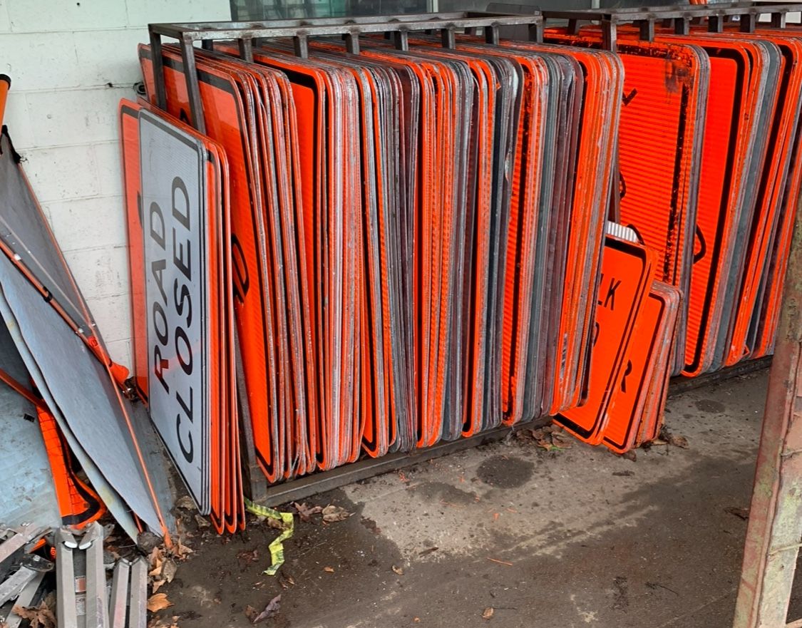 Various signs and stands available. 48x48, 36x36 large black and white static board signs you can change the lettering on, as well as the smaller sized detour, side walk closures etc Some type 2’s available Some no park barricades available Message with your precise needs for more information and pricing. Please indicate whether you need stands with signs or just signs. SOLD OUT ITEMS: 48x48 road work ahead Cones Type 3 barricades Candle sticks No barrels or barrel lights