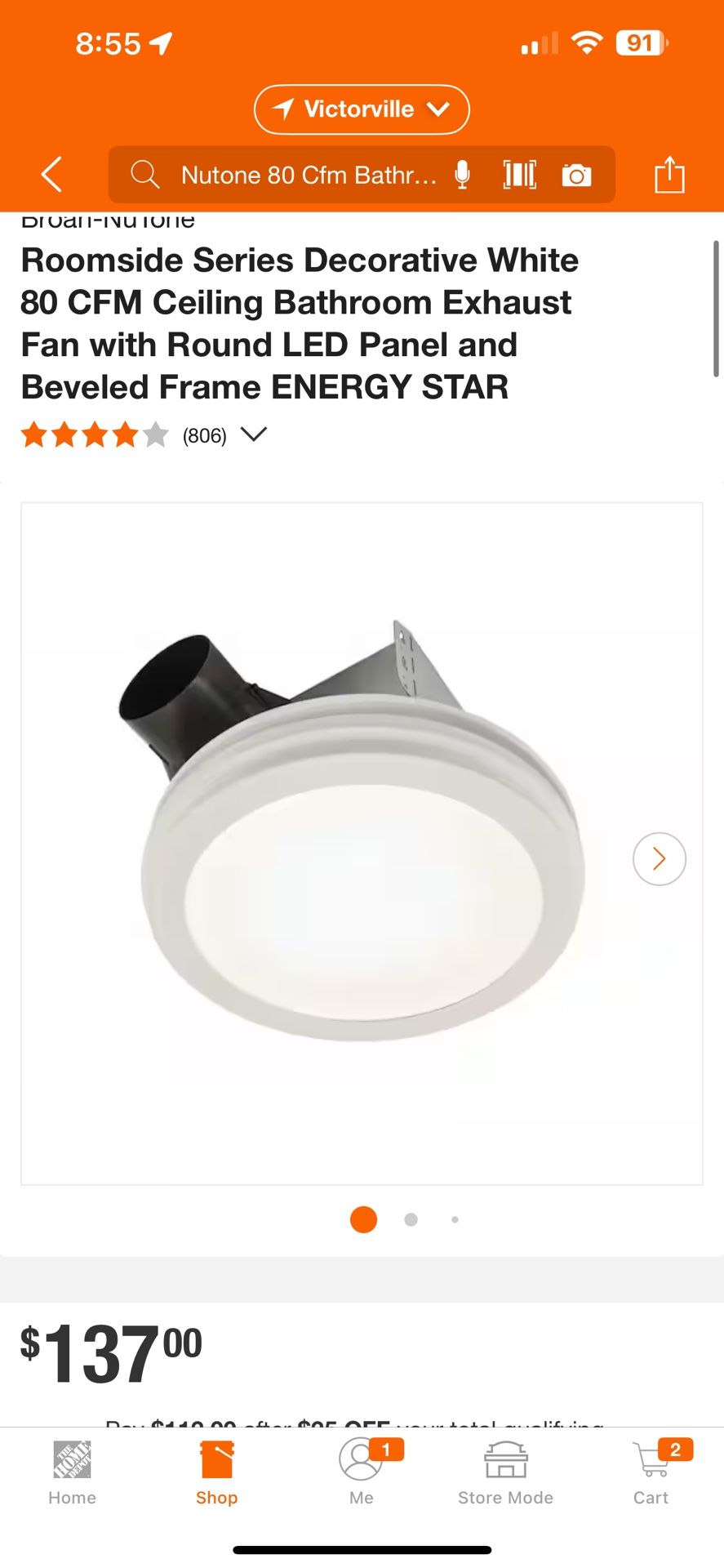 NuTone 80 CFM Bathroom Exhaust Fan with LED Light AERN80LWH New Retail $130+ Only $95