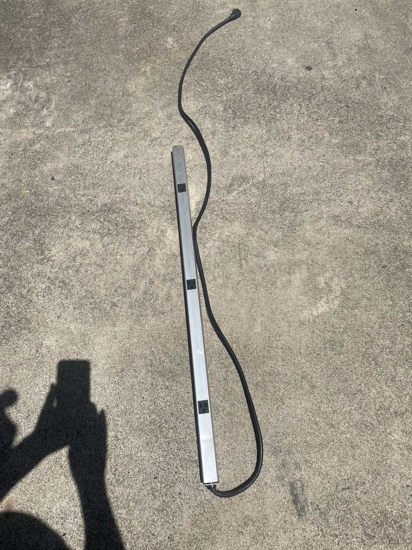 Three outlet aluminum plug strip 15 amp breaker protected, 4 foot cord