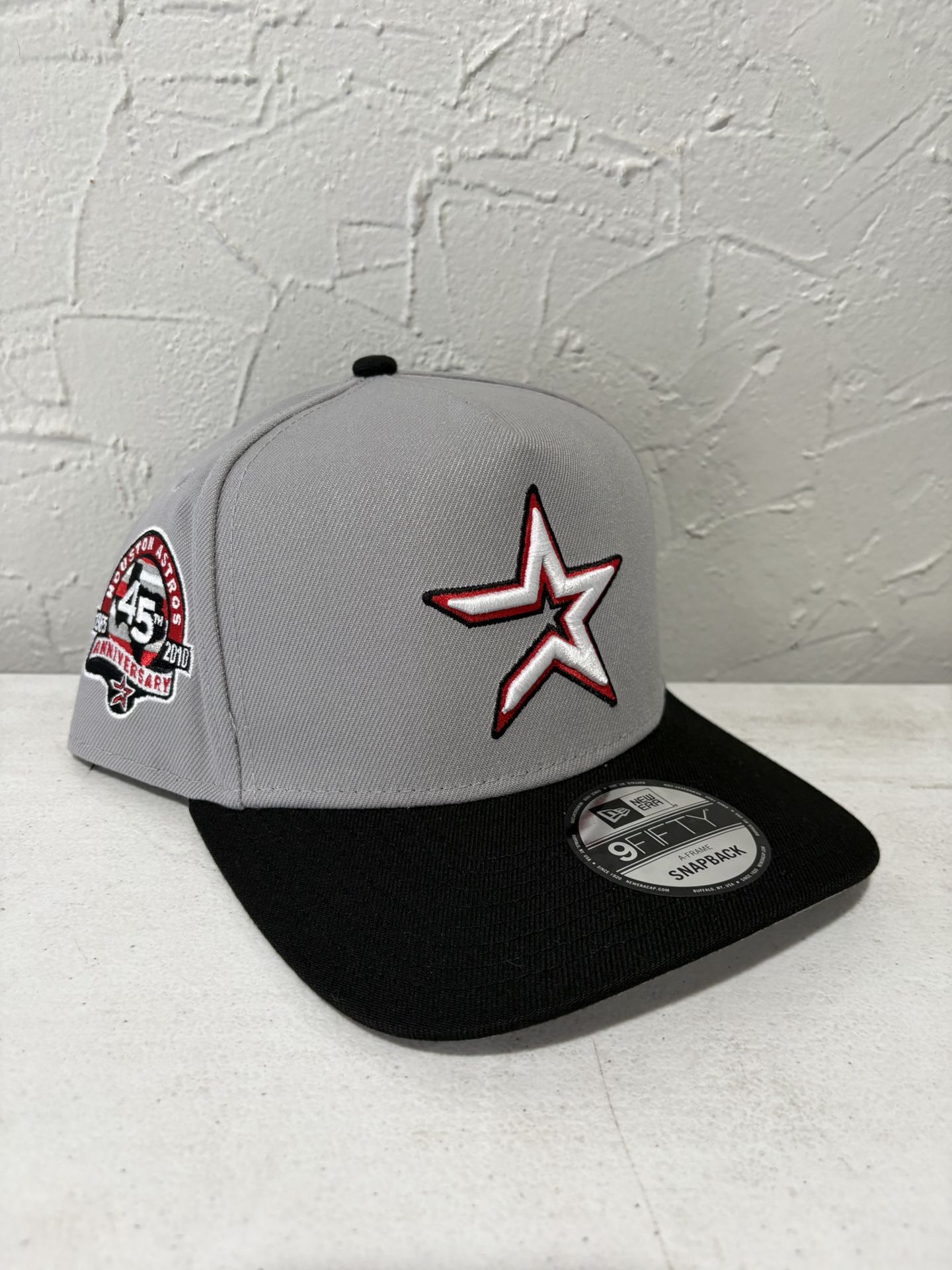 MLB New Era Houston Astros Grey Black 45th Anniversary Patch 9fifty A Frame SnapBack Hats