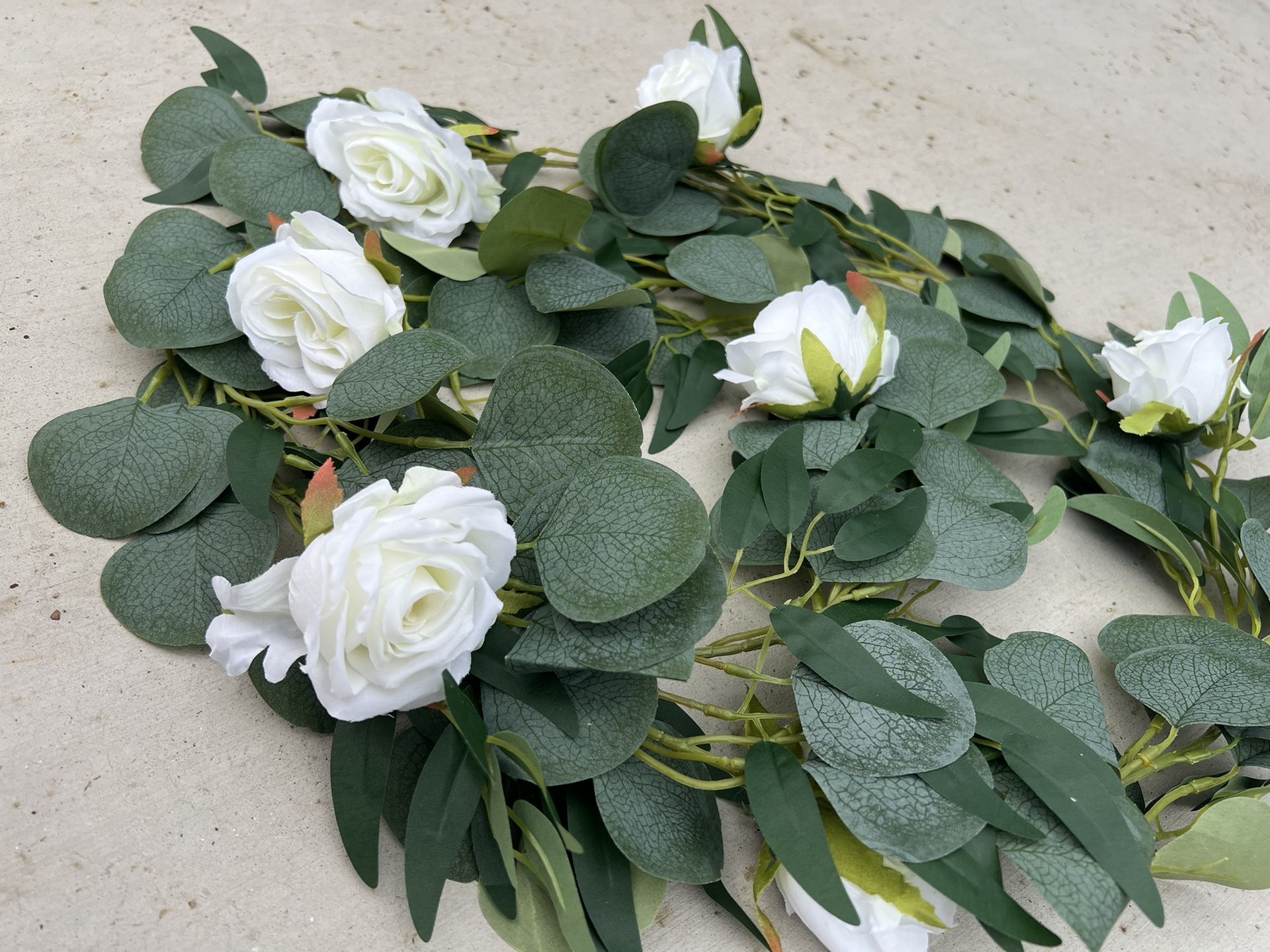 Eucalyptus and White Roses Garland for Wedding Decor, Party Arch Decor, Centerpieces