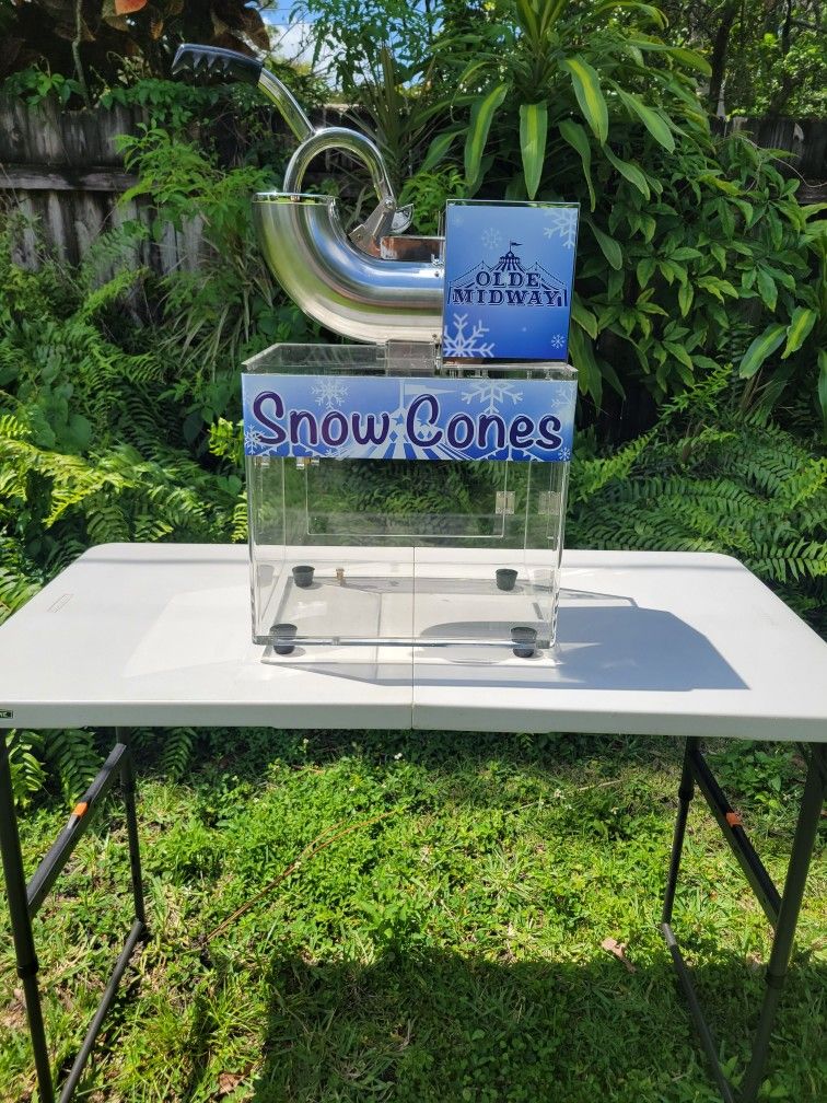 Cones with cups and syrup for 50 servings. We have cotton candy and popcorn also.