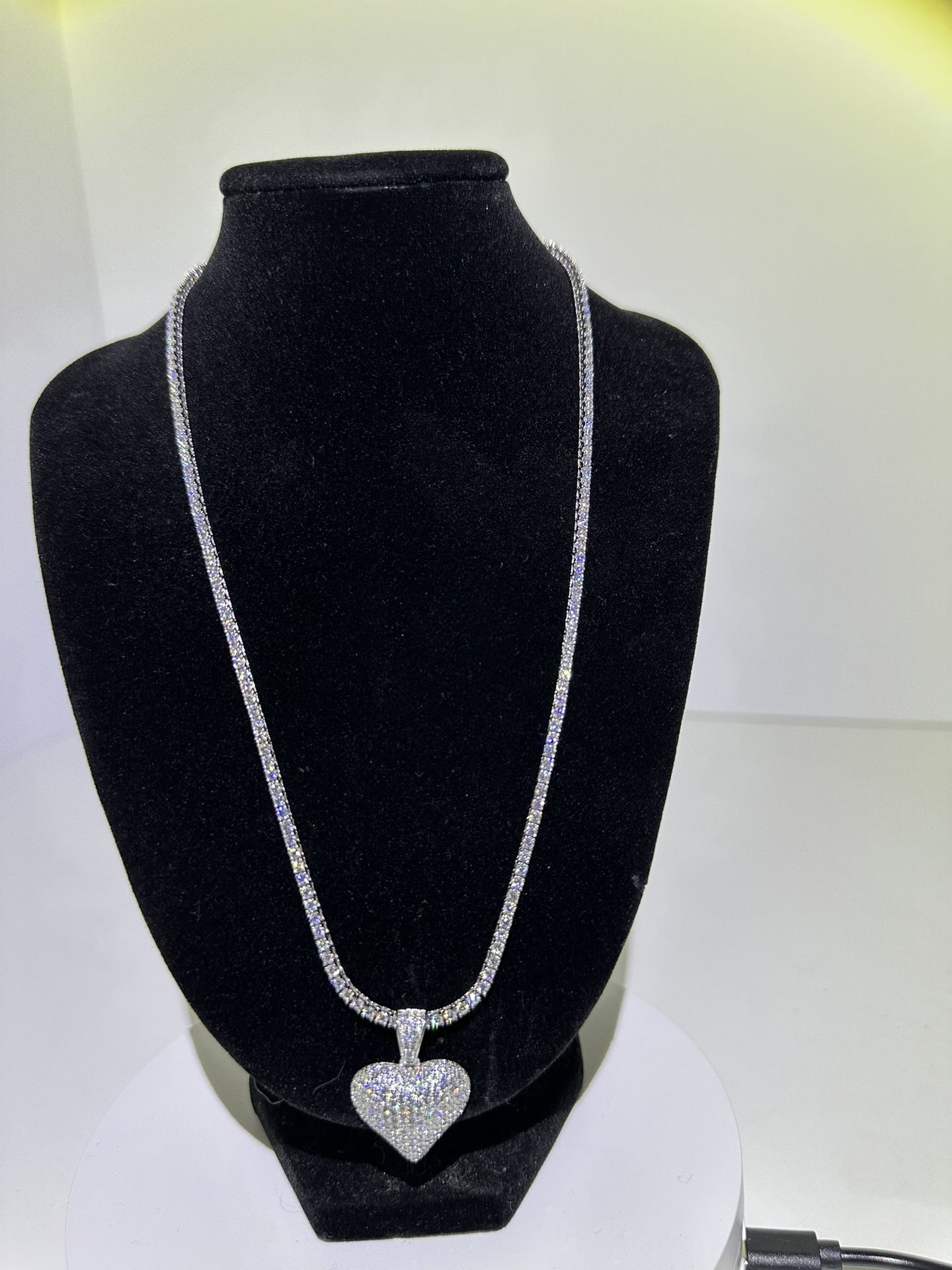Moissanite Diamond Iced out Heart Tennis Necklace 3mm 18” New 15 ct. Moissanite Diamonds Comes with certificates and passes diamond tester, I can test it in sight VVS Moissanite/GRA Certified $280 Price is firm Located in Fontana Available anytime, you can pickup today Feel free to ask any questions HABLO ESPANOL tags (ignore) diamond, moissanite, jewelry, clothing, lifestyle, gemstones, entertainment, money, necklace, shirt, shirts, pants, shoes, chain, chains, ring, rings, earrings, car, cars, mercedes, bmw, audi, infiniti, lexus, trucks, ford, chevrolet, hobbies, sneakers, jordans, nike, hoodies, spider, zip up, glasses, hats,caps, accessories