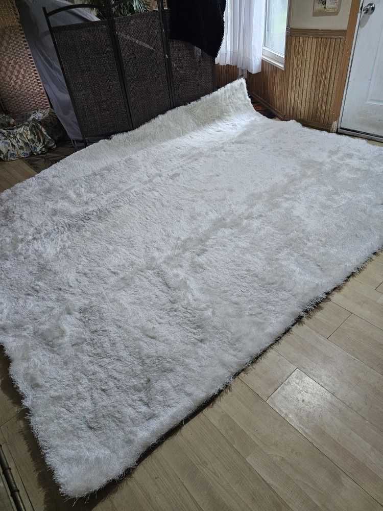 Beautiful White Long Nap Rug