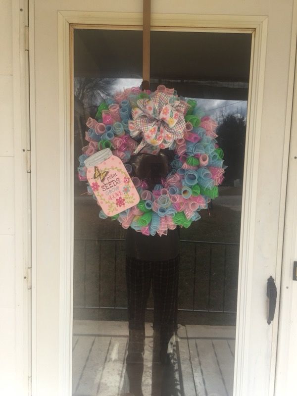 Wreath that I made. I’m asking $35 and I took close up pictures so you can see how it looks. Thank you for looking and please look at my other Wreaths.