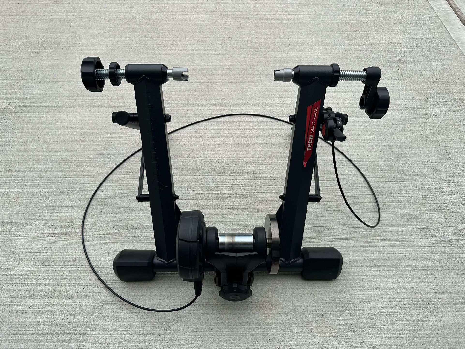 Blackburn Tech Mag Race Trainer with training wheel. Training wheel has shimano 105 11-25 cassette.
