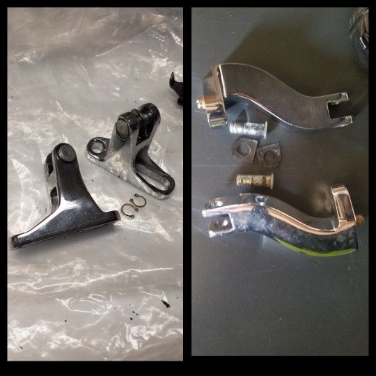 Harley-Davidson passenger Peg brackets for touring models. The smaller set came off of a Milwaukee 8 it brings the pegs closer to the bike. $50 per set. Give me a follow for Harley parts and check out my other offers thank you.