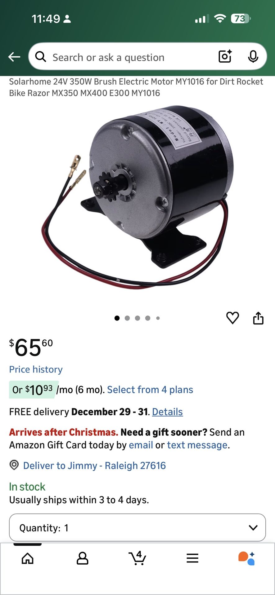 24V 350W Brush Electric Motor MY1016 for Dirt Rocket Bike Razor MX350 MX400 E300 MY1016 It brand new (450)1225