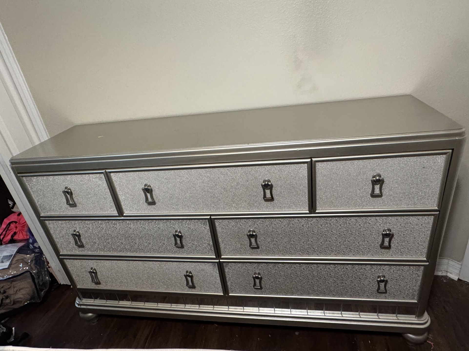 Free dresser , bed and mattress in good condition available to pick up now, but one side of the bed frame is broke. You will need 2 or 3 people and a pickup truck to take it. First come first served.
