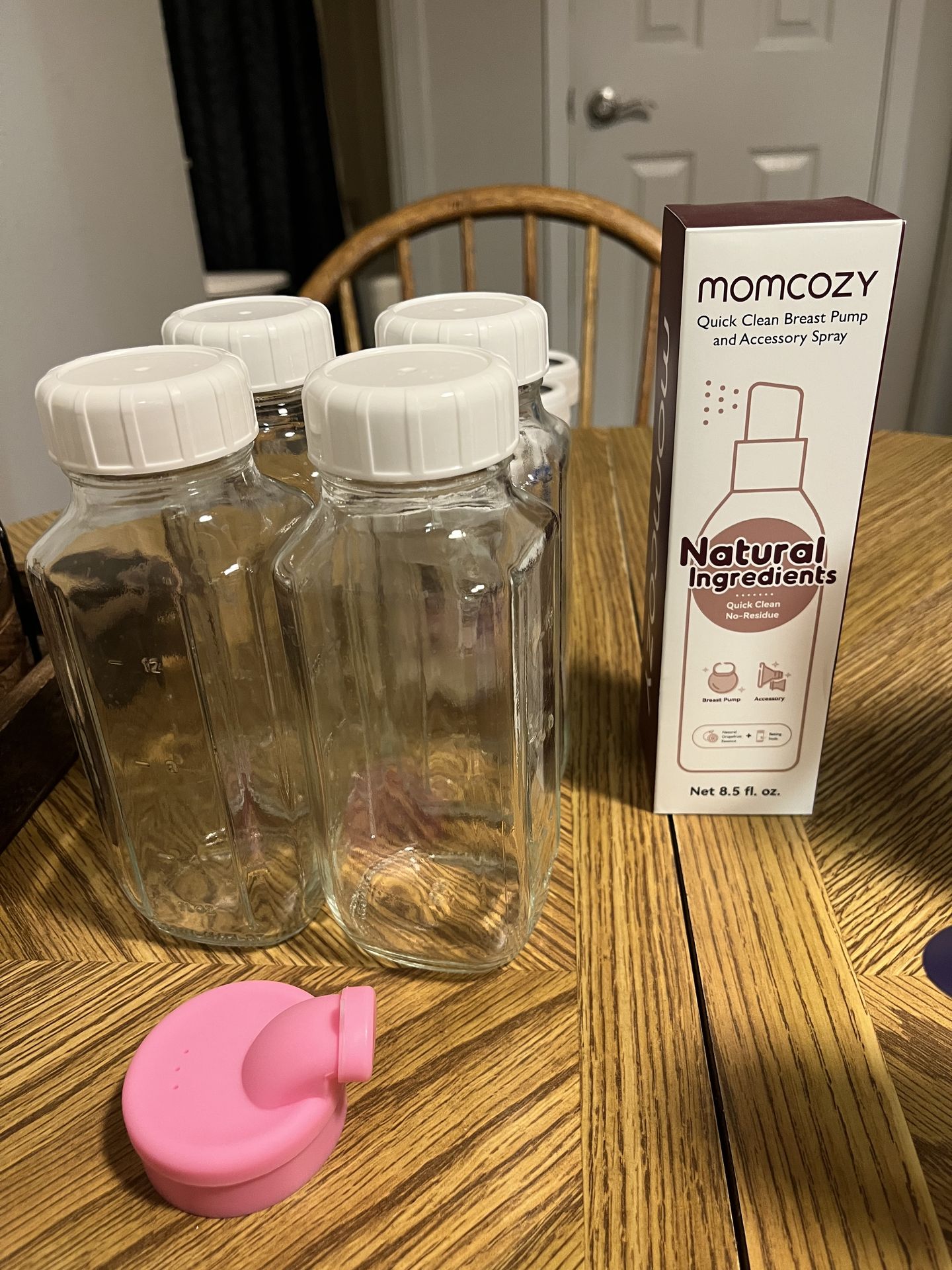 All brand new never used storage bottles come with pouring spout. 8 things of formula with the nipples included and mom cozy pump cleaning spray, will sell things separately :) or $30 for all