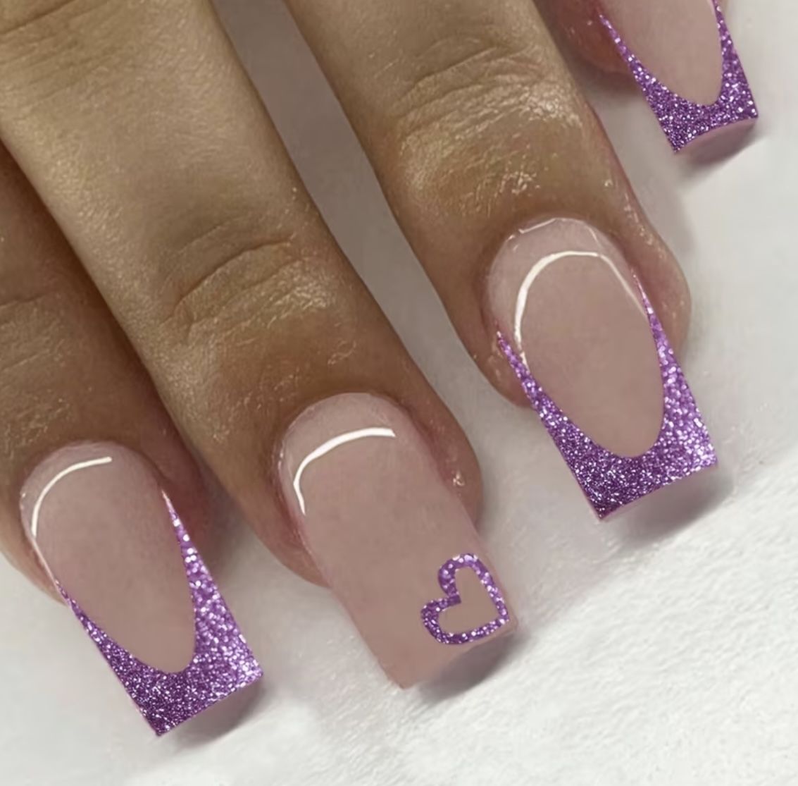 24pcs French Purple Glitter & Heart Design Press On Nails Fashionable Medium Size Detachable Fake Nails Suitable for Any Occasion Trendy & Unique Accessories & Jewelry