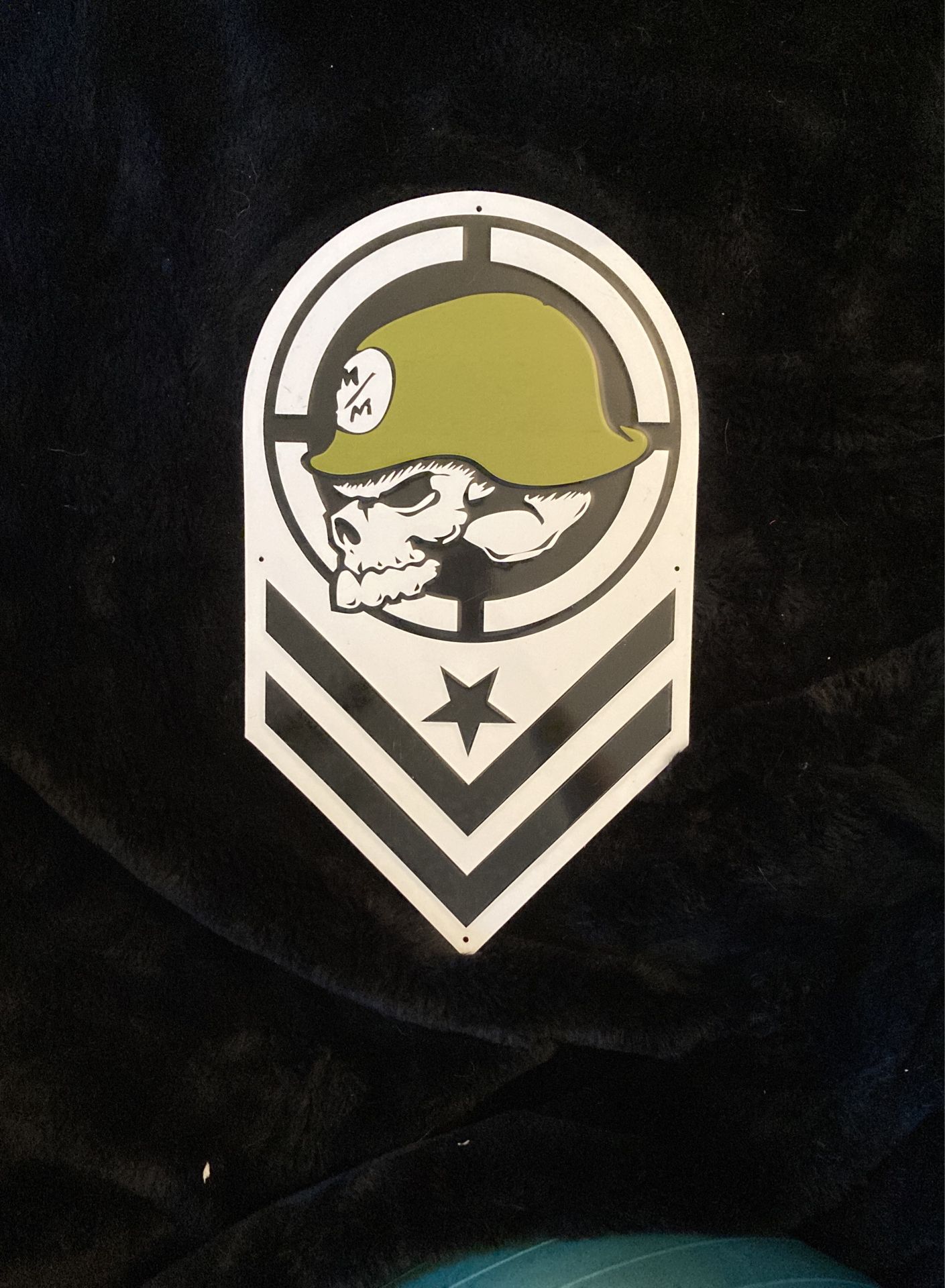 Thin metal logo sign with holes to hang up. Metal Militia Logo Brand New
