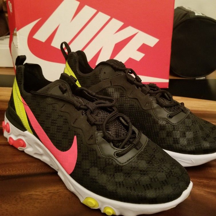 Nike react Element 55 in black/flash crimson Brand new. Size 9.5 mens and 11 womens