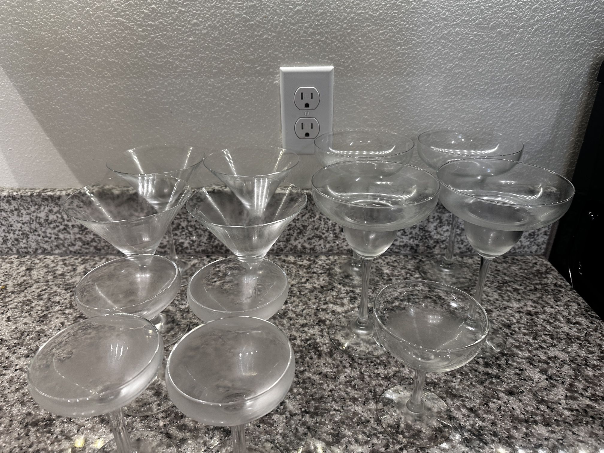 Clear glass goblets in a set of different sizes. The glass is strong, clean, and free from scratches. Perfect for wine, champagne, or cocktails. Ideal for home use, parties, or holiday table settings. All glasses are in great condition with no crack
