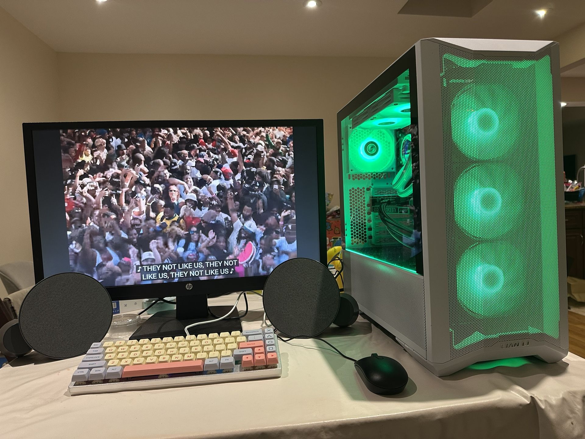 Selling a gaming setup. Can play all games. This is want it comes with. CPU - Ryzen 7 3700x Motherboard - MSI B450 Tomahawkax Max RAM - 16 gb GSkill Ram CPU Cooler - Lian Li 240 Galahad AIO (6 Lian Li ST120 RGB fans) Power Supply - Seasonic gold 750W Graphics Card - EVGA Nvidia GTX 1660 Super Case - Lian Li lancool 2 mesh Keyboard - gmmk 2 65% fully modded or Asus Strix Scope NX TKL keyboard (breand new). Your pick Monitor - HP 27 in monitor 1 ms 60hz Mouse - Logitech G502 wired mouse Speaker - logi speakers Windows 10 pro installed I will also include a monitor mount brand new. It clamps onto the desk NEED TO SELL ASAP. Thanks