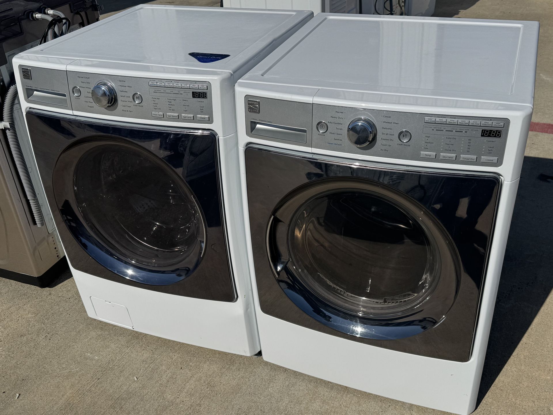Front load Kenmore elite washer and front load Kenmore elite dryer electric high efficiency square doors working perfectly extra for delivery same day delivery and installation available