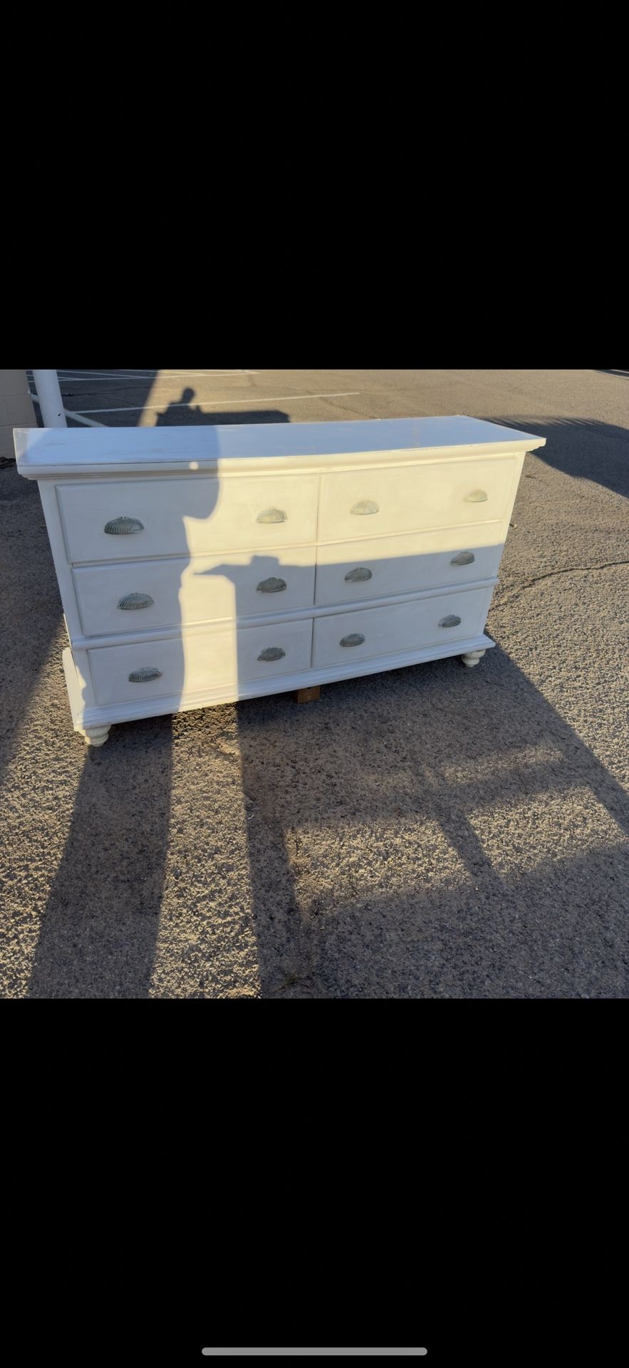 Good condition White color Includes mirror Drawers working good Cash payment only Pick up Westside Delivery available for a fee