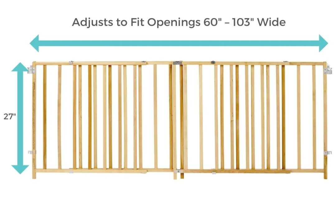 Extra Wide Wooden Baby/Dog Gate – 60" to 103" – New
