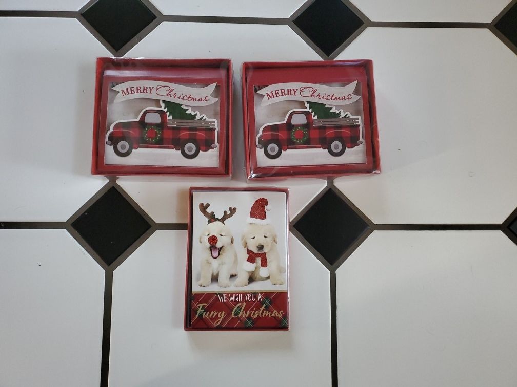 3 Boxes/Sets Of Christmas Cards: Truck Pop-up & Puppy Cards