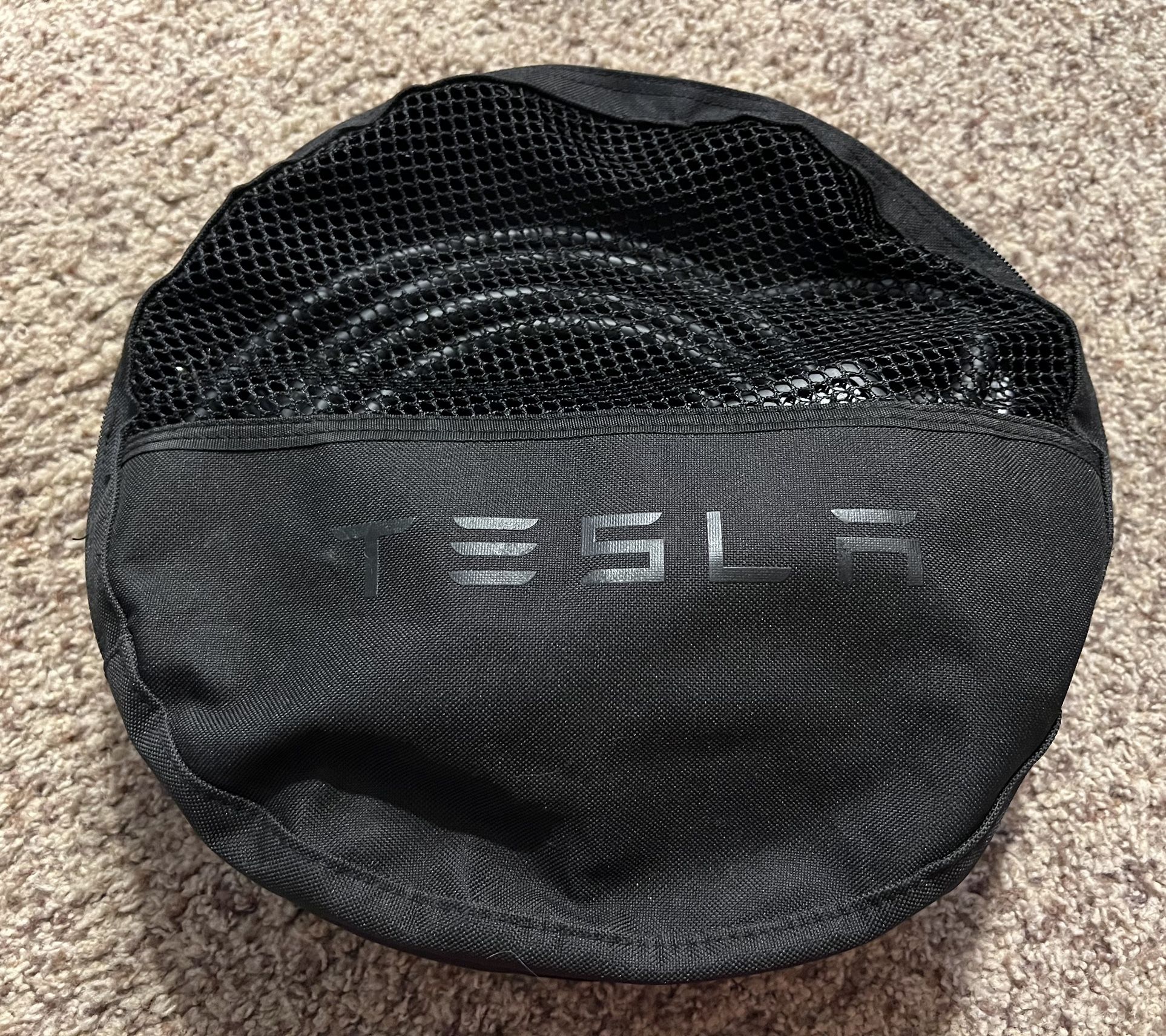 Used / preowned TESLA charging cable plug & bag part number 1101789-00-M My friend moved and had extra cables, and asked me to sell them.