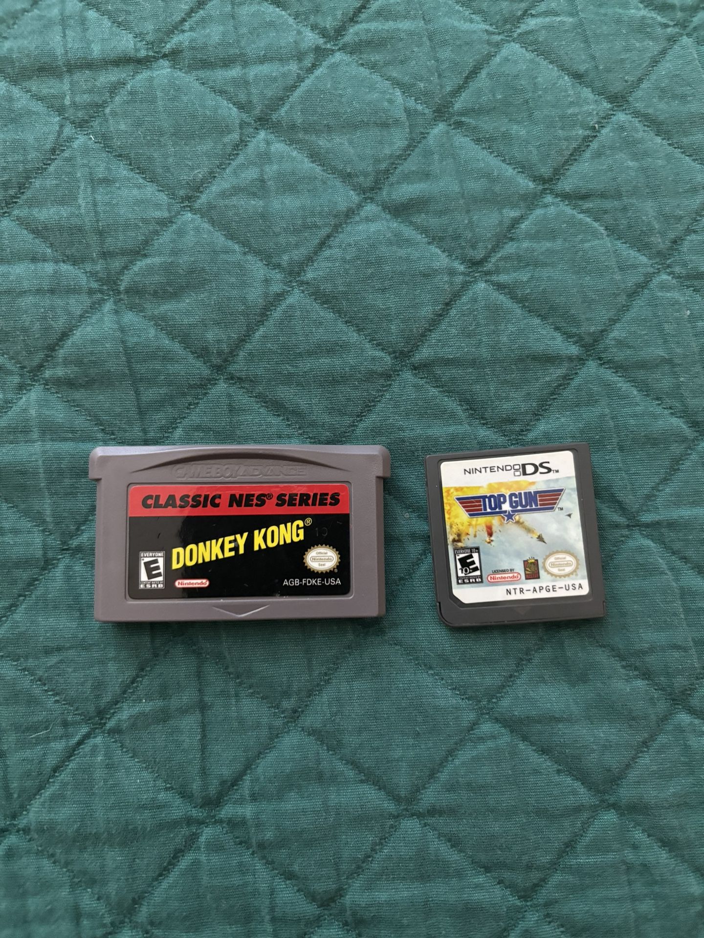 Gameboy advance Donkey Kong game $30 Nintendo DS Top Gun game $10