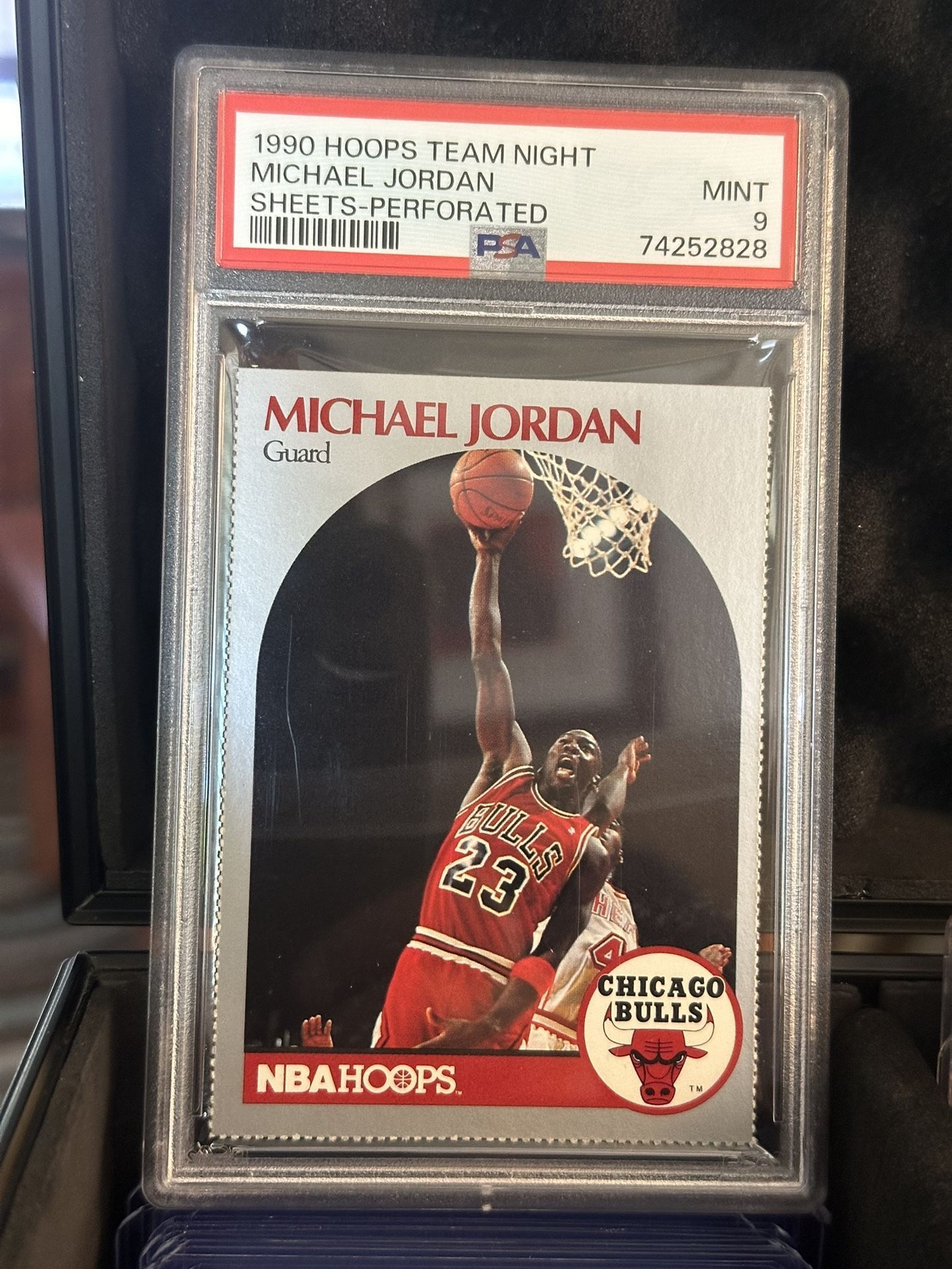 The card rated mint 9 from PSA Fans got this version of car of MJ this night in 1990 home team night sheets were Perforated as you see in this card very clean of the HOF’er!