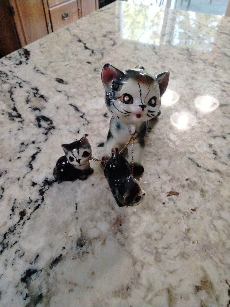 Vintage Ceramic. Mama With Kittens
