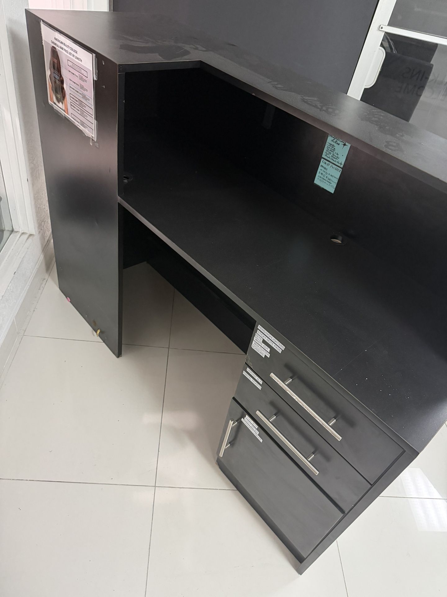 Front door desk for receptionist for any business. With 2 drawers and a cabinet Measurements W 20 H 45 L 60