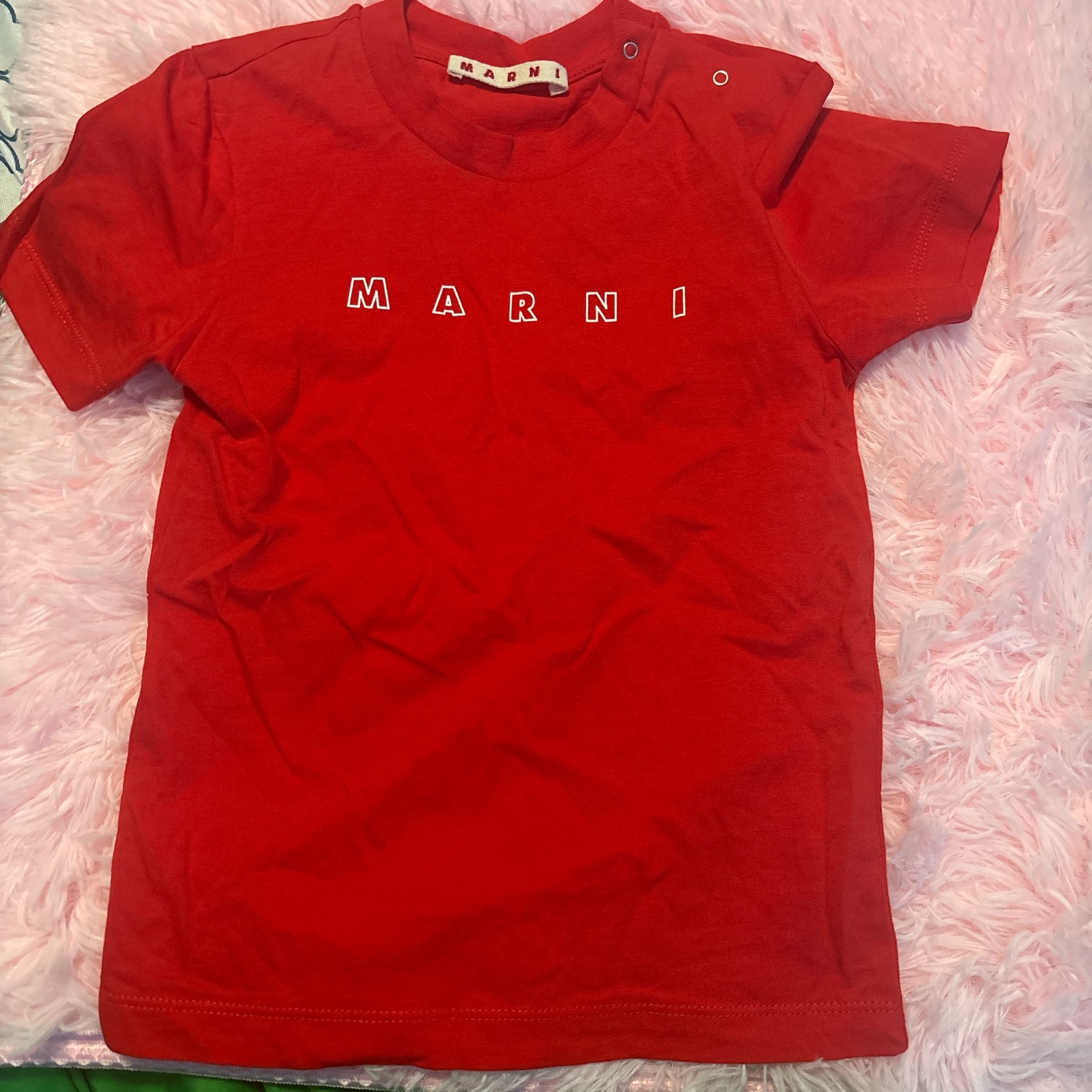 AUTHENTIC KIDS Marni red cotton baby tee with white lettering & matching blue skirt set come as a set only worn once! In excellent condition! #kidswear SKIRT SIZE : 24-36 months SHIRT SIZE: 24-36 months
