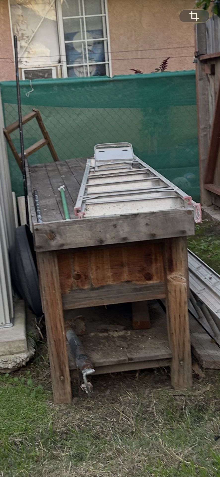 Nice beautiful long table For work , art, projects , home improvement Solid wood complete bring your own helper Happy holidays