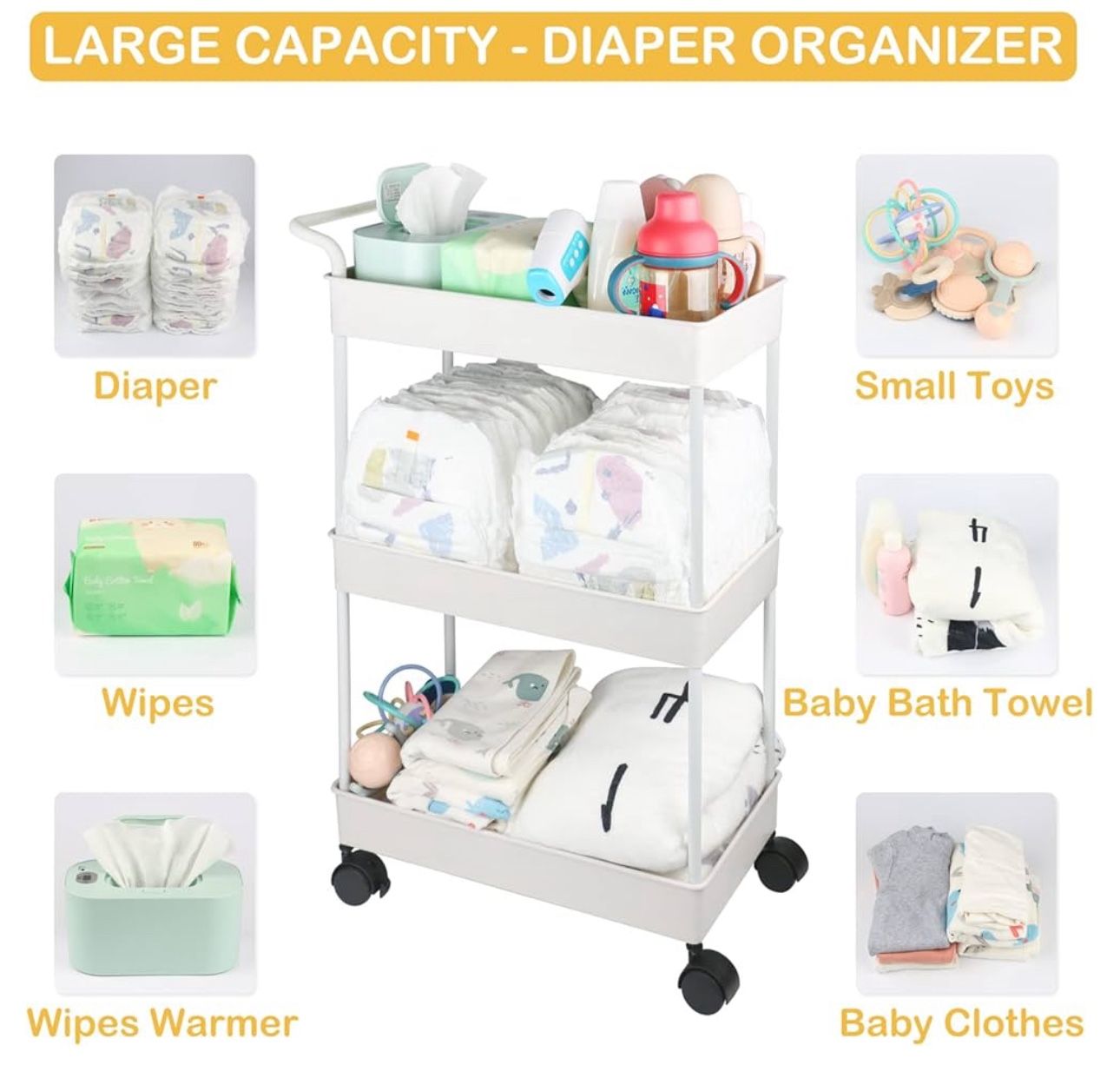 Baby Diaper Caddy, Plastic Movable Cart for Newborn Nursery Essentials Diaper Storage Caddy Organizer for Changing Table & Crib, color Beige
