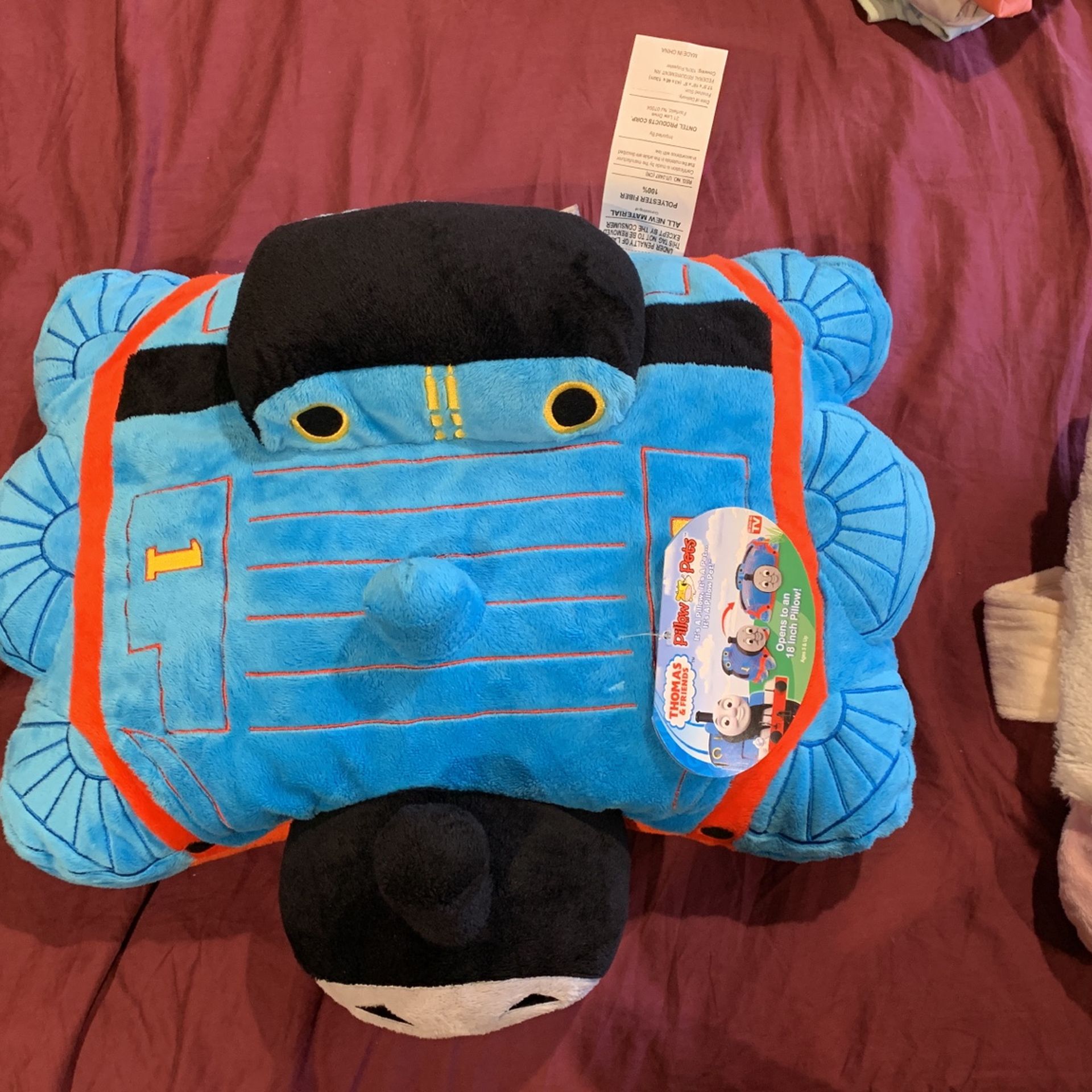 This pillow is super comfy and soft and can fold up to look like Thomas the train and for easy storage
