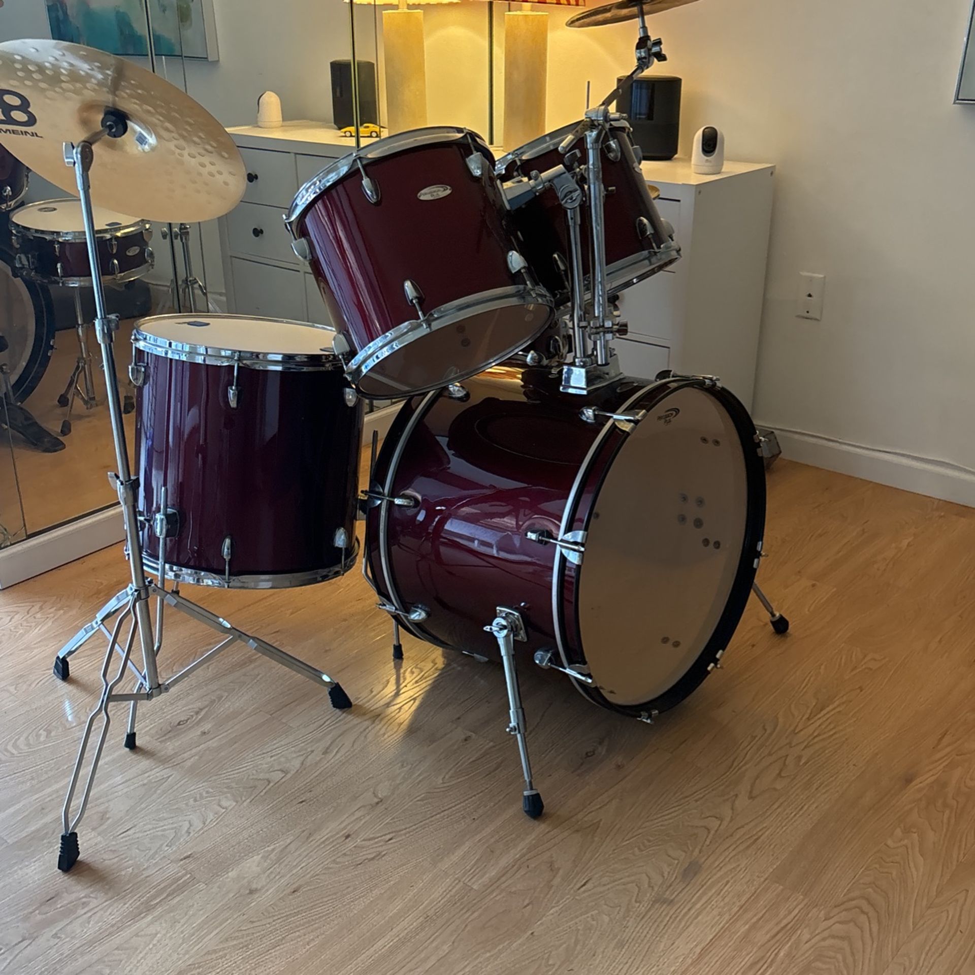 Plus percussion 12 “ 13 “ 14” 16” Bass drum 22” cymbals Meinl sabían .. Drum pedal Tama