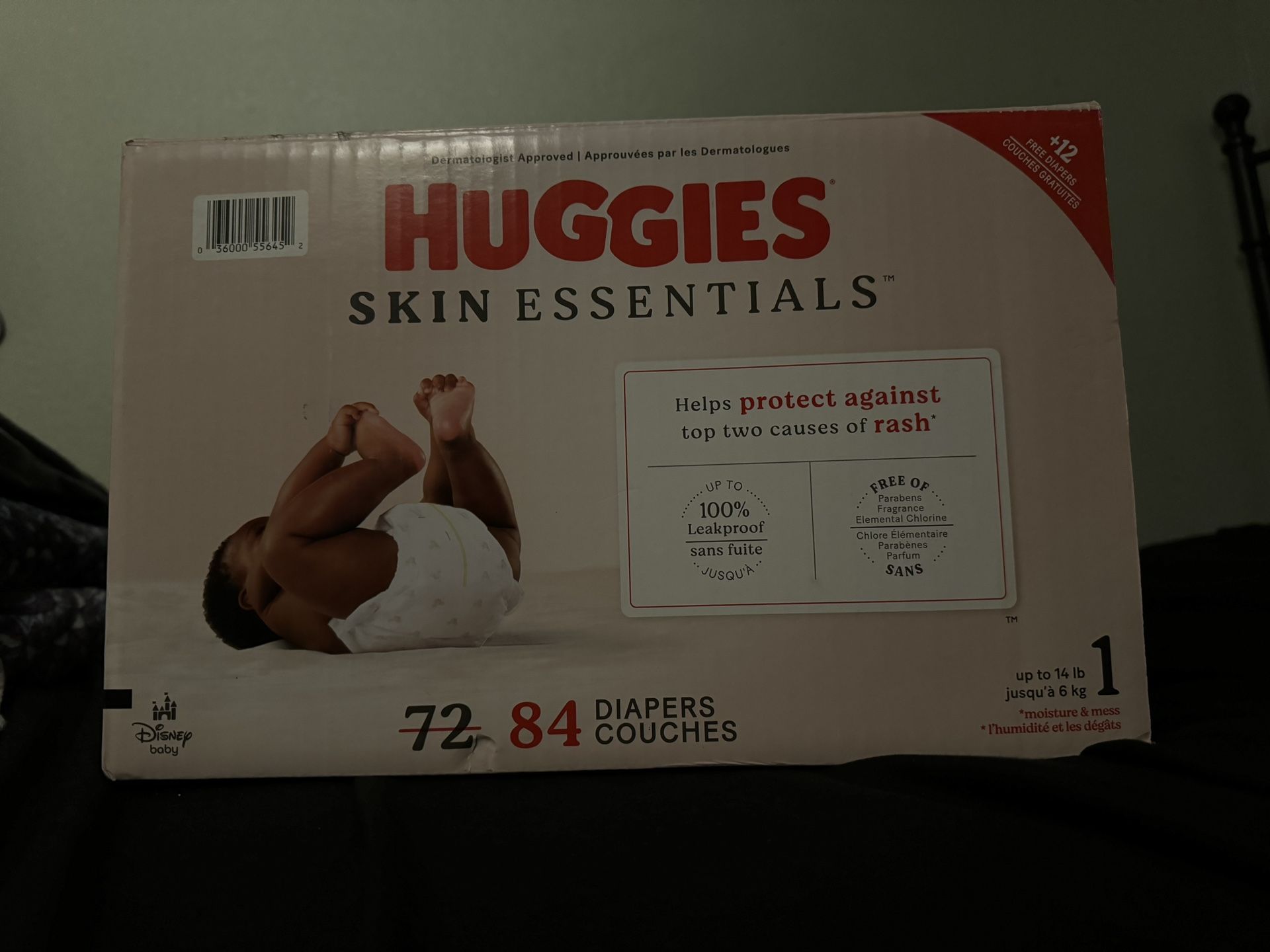 84 diapers 12-18 lbs I opened the box and only used one unit, I will give you a bag with 50 size 1 diapers for free.