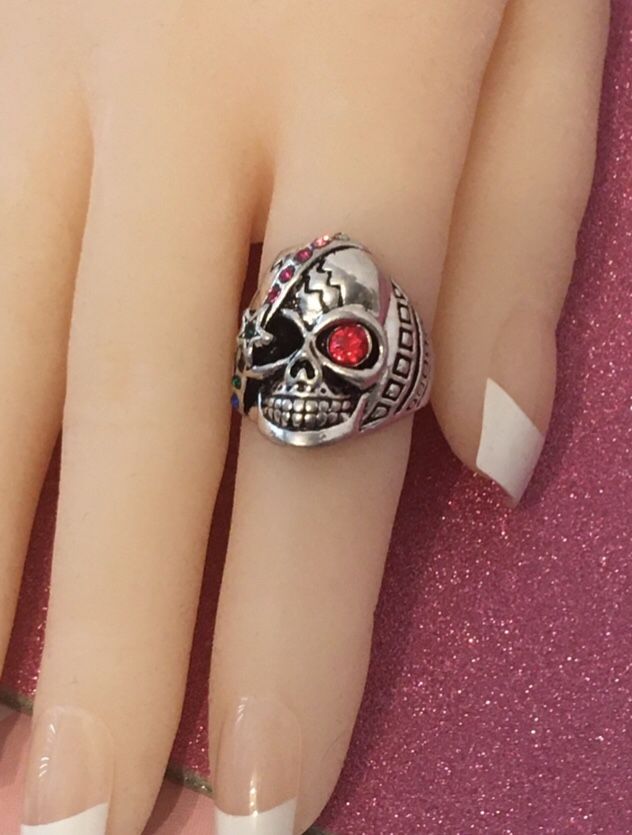 Pirate Skull Ring with Multicolored Rhinestones. Unisex. Size 7. NWT. #pirateskullring #rings #jewelry #pirate #skullring