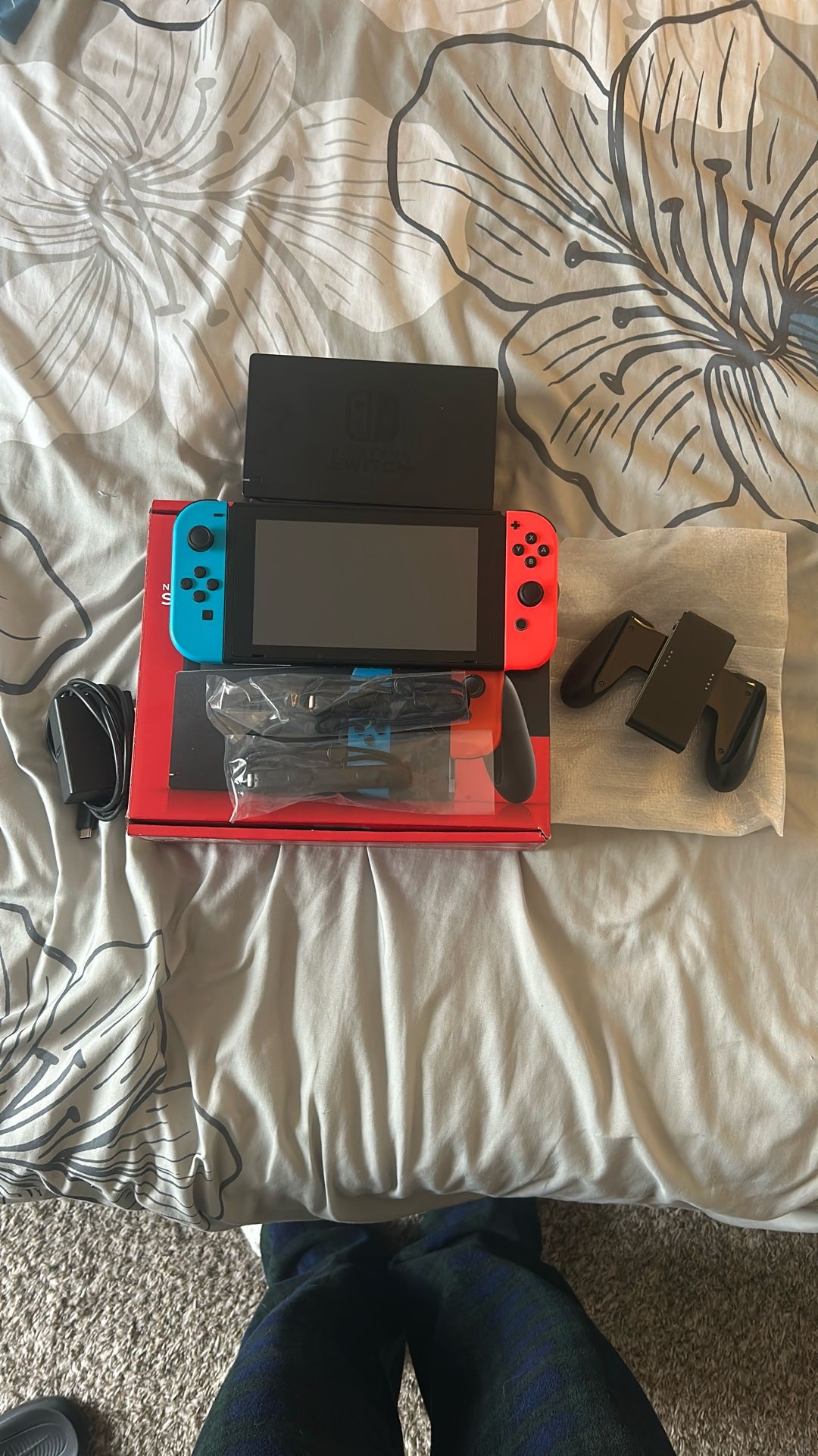 Like new (Have used less than 10 times) Comes with box, charger, brand new joy con attachments, Manual