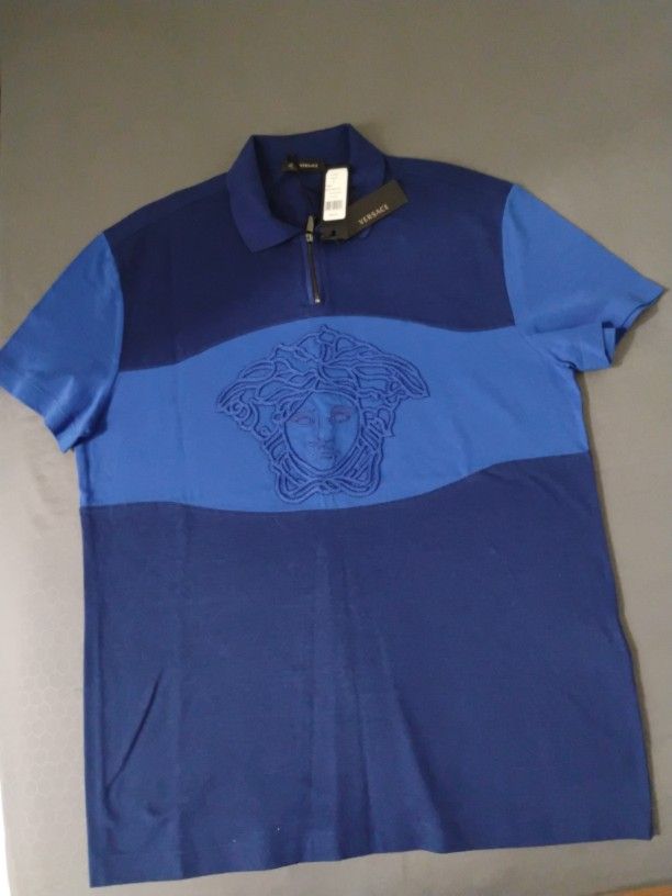 Brand spanking new aqua blue Versace Polo style woman Attracting shirt