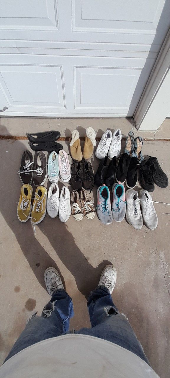 Hello i am selling my shoes all together there are 15 pairs most of them are vans Men's shoes I am asking only $60.00 for all of them