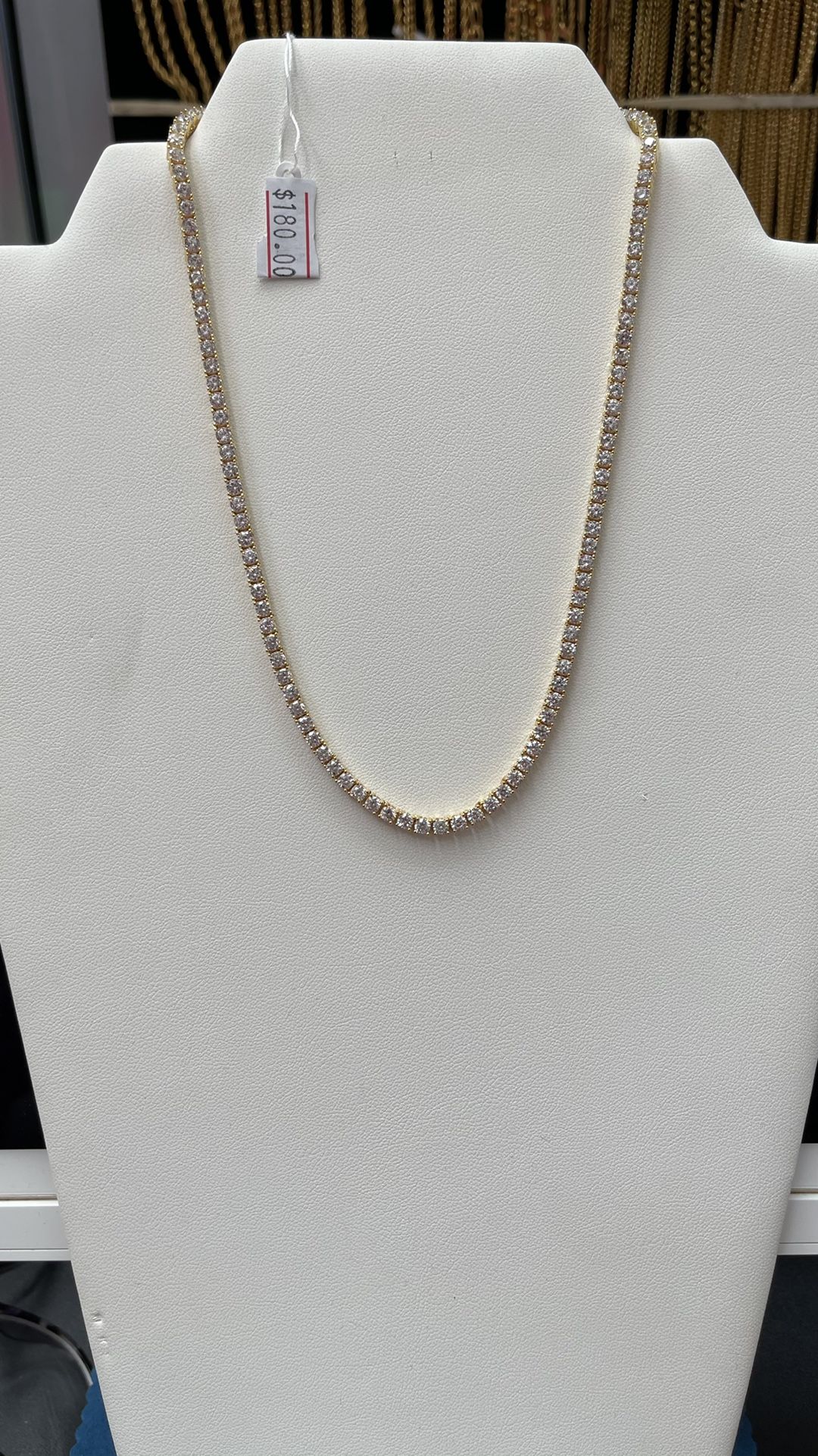 Real 925 gold plated sterling silver tennis chain 16 inch