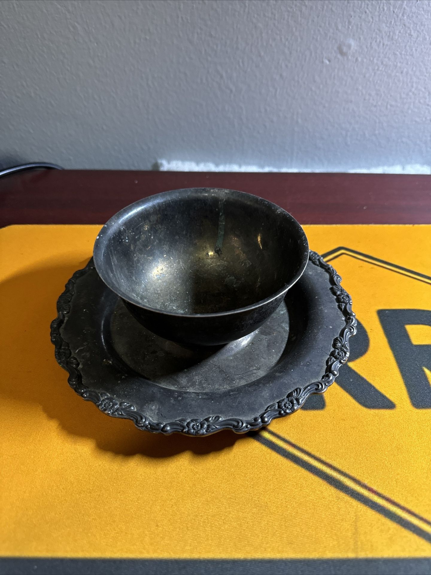 Vintage Silver plated snack Plate with attached Sauce Bowl