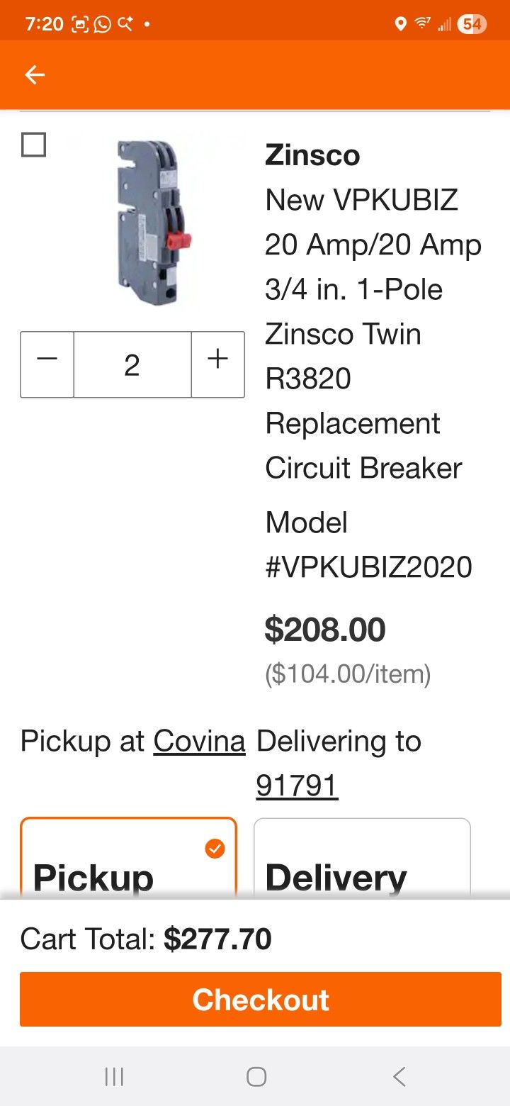 I have 2 new 20/20 Amp twin pole Breakers for sale 65 each or both for 100