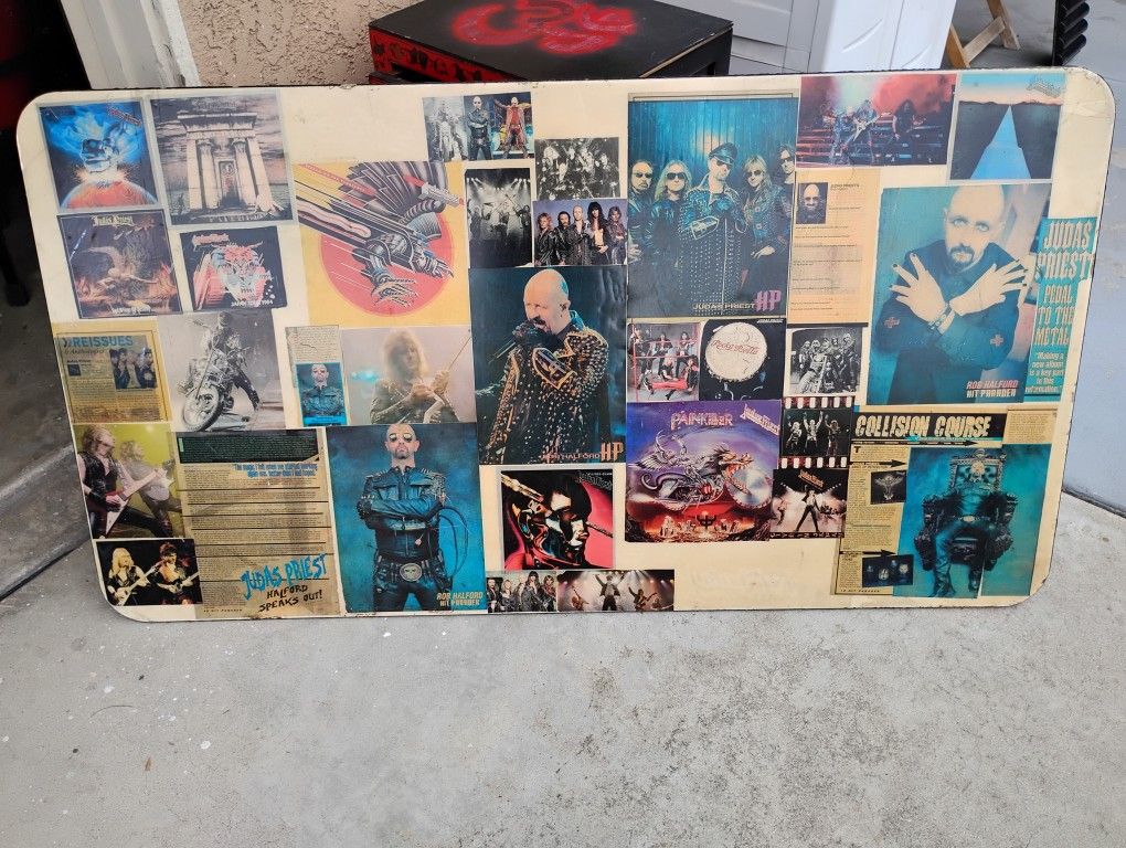 3x4 ft hand made collage table top featuring all Judas Priest pics and articles from 80's. One of a kind!